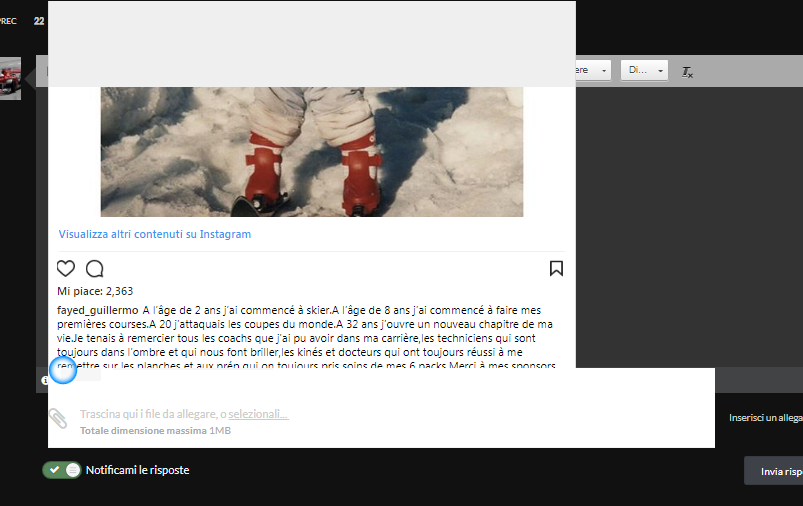 non mi permette di incollare (un link per esempio) e non mi appare il tasto invia.